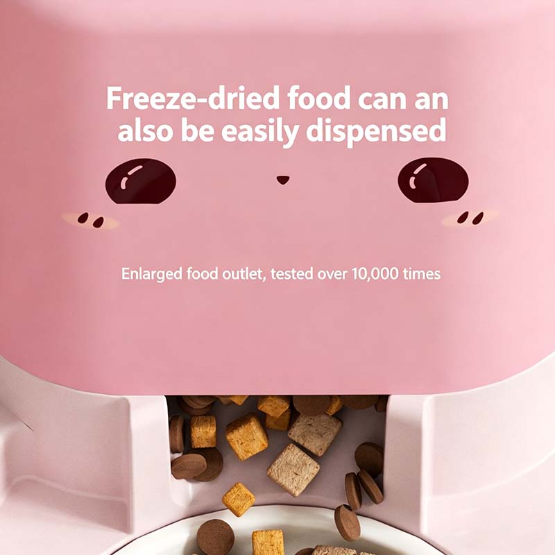 Generous storage capacity with automatic food dispensing for consistent pet feeding.