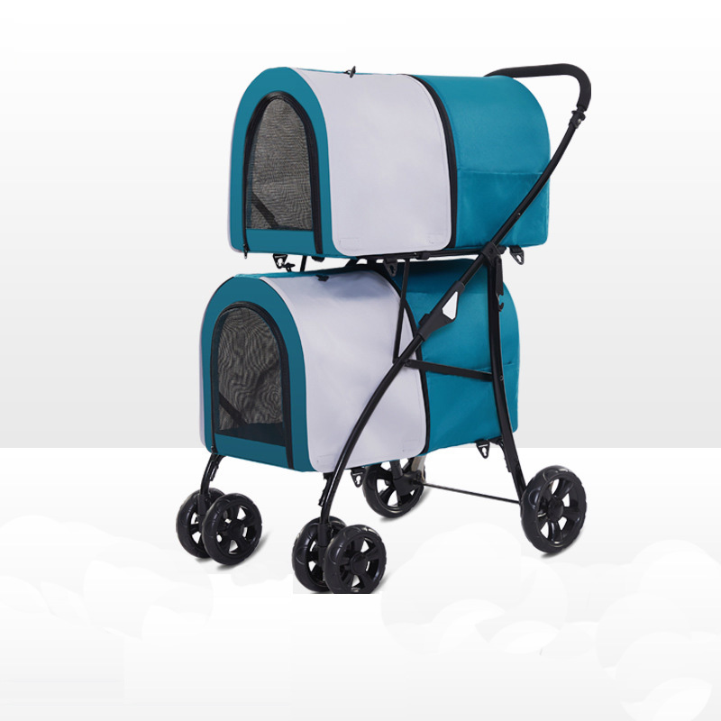 35*12.5*18.9inchDiscover the Double Pet Stroller with 2 Detachable Carrier Bags, featuring detachable carriers, breathable mesh windows, and durable Oxford fabric. With 360-degree wheels and a sturdy metal frame, it ensures smooth, safe travel. Easily foldable for storage, this versatile stroller holds up to 17 lbs per carrier, perfect for pet adventures.