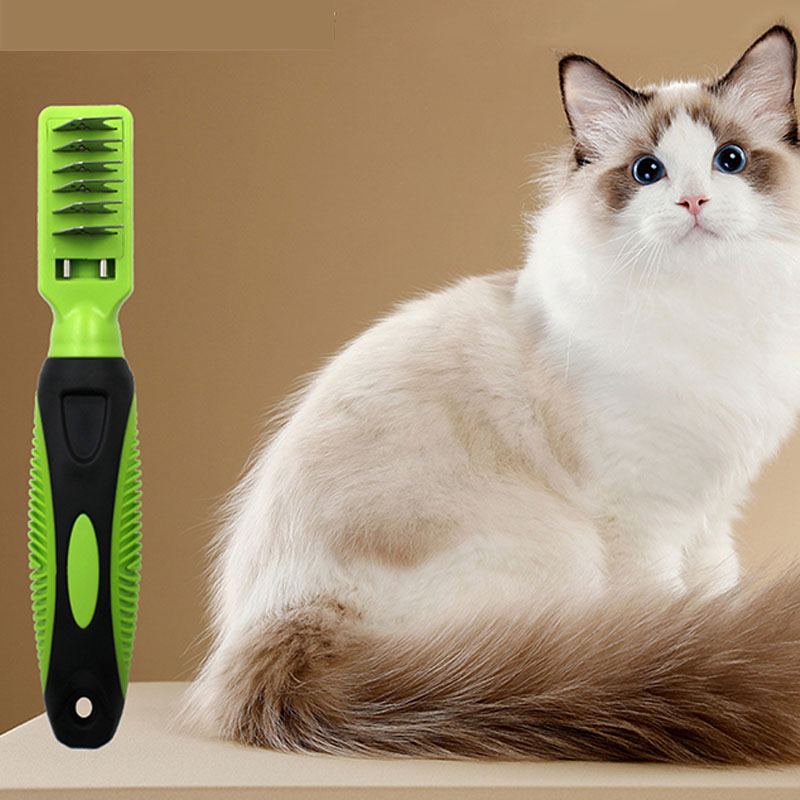 100 pcsPet detangling and hair removal blade comb gently removes mats, tangles, and loose hair. With rounded teeth, it’s tough on knots but soft on skin, doubling as a soothing massage tool. Its ergonomic grip ensures comfort, making grooming easy for all dog and cat hair types.