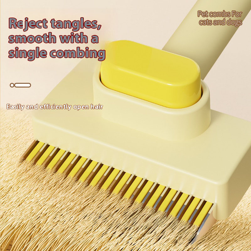 Pet Hair Removal Comb Flea Comb! Dual-action bristles gently remove loose fur while massaging to promote a shiny, healthy coat. The ergonomic handle ensures comfort, and a button simplifies hair release. Perfect for cats, dogs, and cleaning furniture, this tool reduces pet stress and enhances bonding, making grooming a breeze for pet owners.