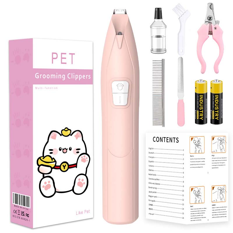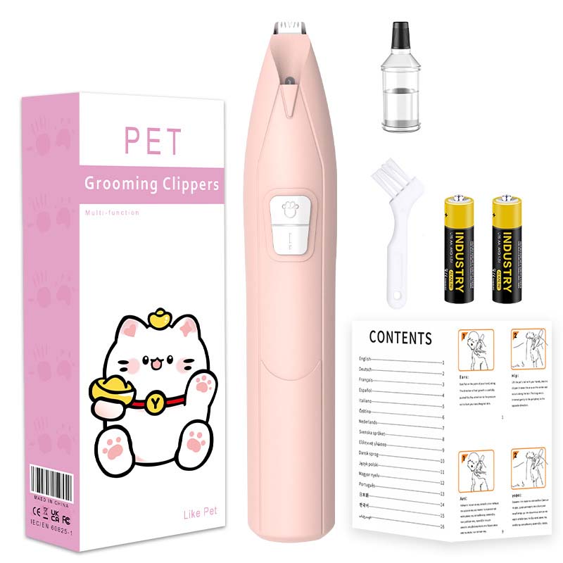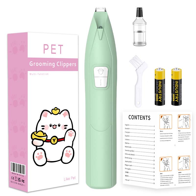 Pet grooming LED hair trimmer with precision stainless steel blades gently trims and shapes fur for cats and dogs. The built-in LED light illuminates hard-to-see areas, while the low-noise motor ensures a calm, stress-free experience. Ergonomically designed with a comfortable 4.5-inch non-slip grip, it’s ideal for sensitive pets and home use—delivering safe, smooth, and efficient grooming every time.