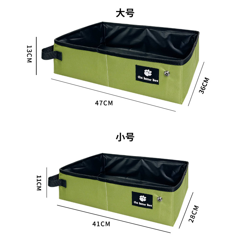 S:13*19*6cm M:14*22*6cmThe portable litter box is a travel essential for cat owners. Unfolding to two different sizes, it offers ample space. With a waterproof, easy-to-clean liner and durable oxford cloth, it’s perfect for trips. Use it as a litter box, pet bed, or storage bag, adding style and convenience to your pet’s adventures.