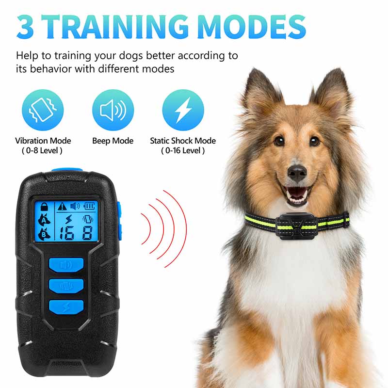 Beep + Vibration + Shock — Humane correction for the dog training collar, stops barking fast.